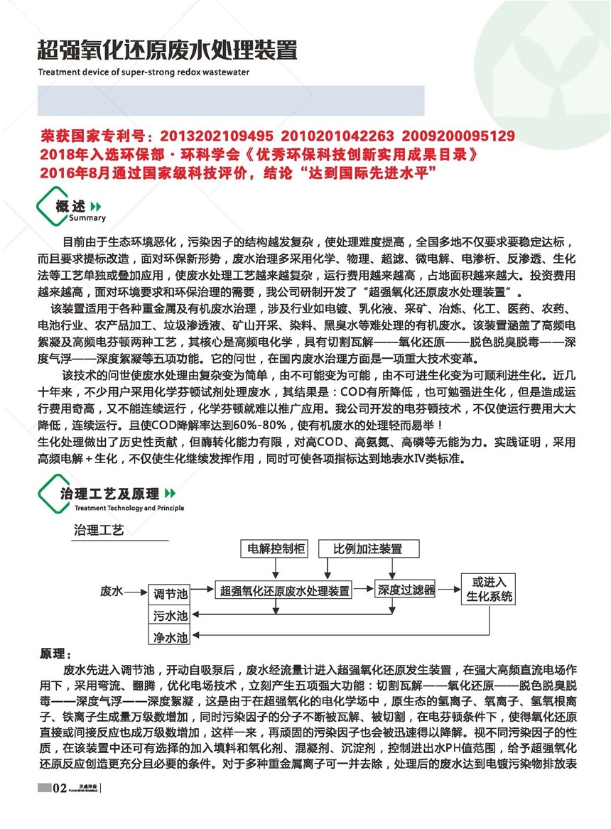 超强氧化还原废水处理装置(CYH法)处理各种有机废水、各种重金属废水