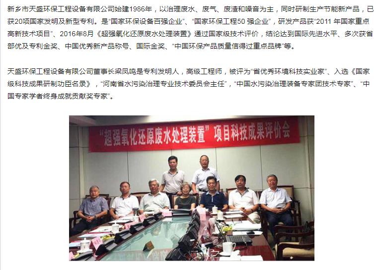 网易刊登:解码科技创新——新乡市天盛环保“超强氧化还原废水处理技术